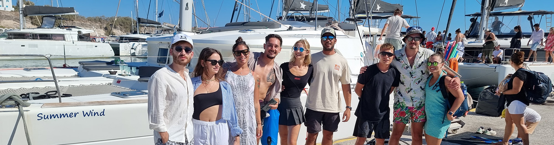 Catamaran Santorini crew is always there for you. Captain Konstantinos and his staff will sail the boat, assist you with the water sports and equipment, implement your special activities, serve your meals and beverages, and help you with anything you desire. Our expertise in coordinating functions for small and large groups will ensure that your day with us will be an event that you and your guests will remember long after you have left beautiful Santorini. With us, there's truly something for everyone.